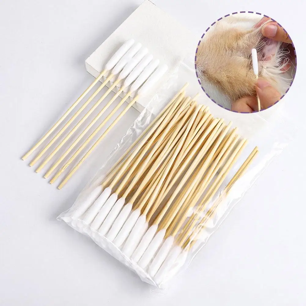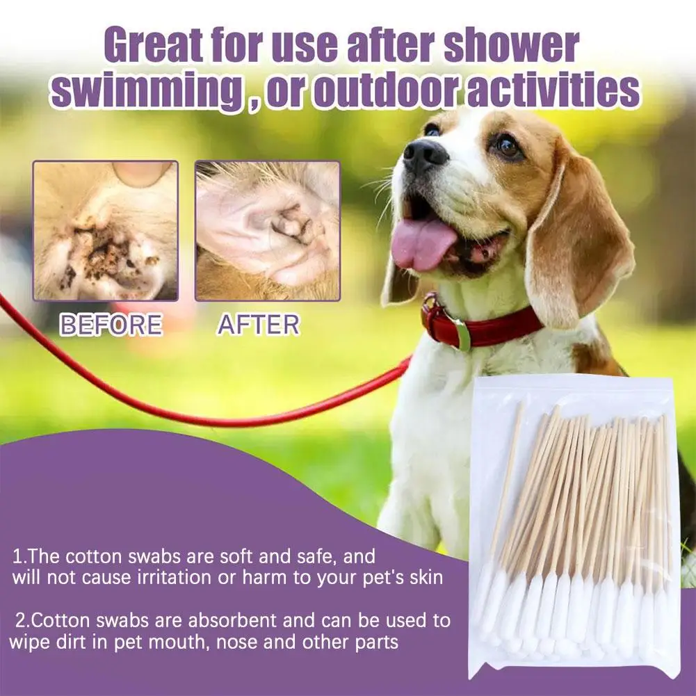 50/100Pcs Pet Ear Cleaner Cotton Buds Dog Ear Cleaner Cotton Swab Sticks Cotton Buds for Dog Cat Ear Wax Removal Pet Supplies