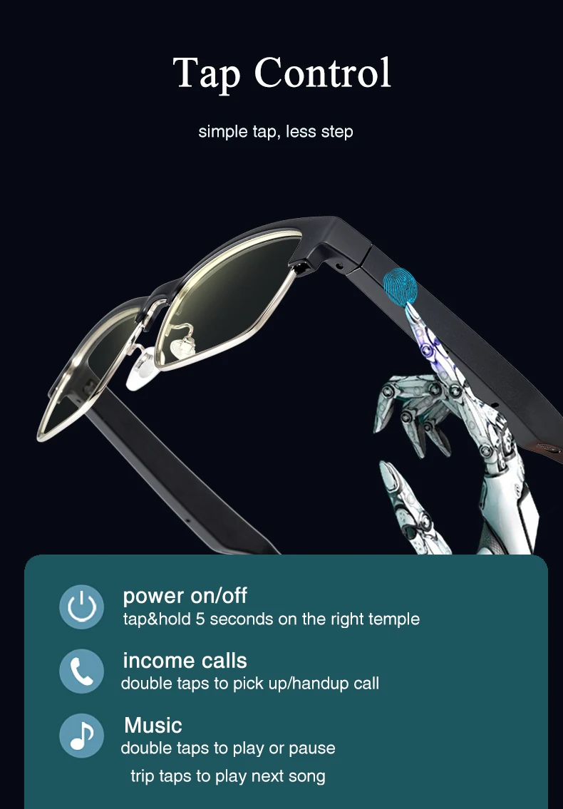 6.【IP5 Water Resistant】This smart audio glasses dispensing and sealing cover is waterproof and sweat proof. Wash the lens without worrying about water ingress.